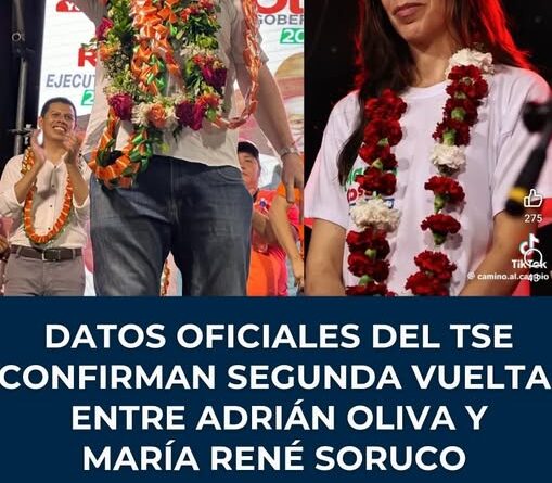 DATOS OFICIALES AL 98% DEL TED CONFIRMAN SEGUNDA VUELTA ENTRE ADRIÁN OLIVA Y MARÍA RENÉ SORUCO.